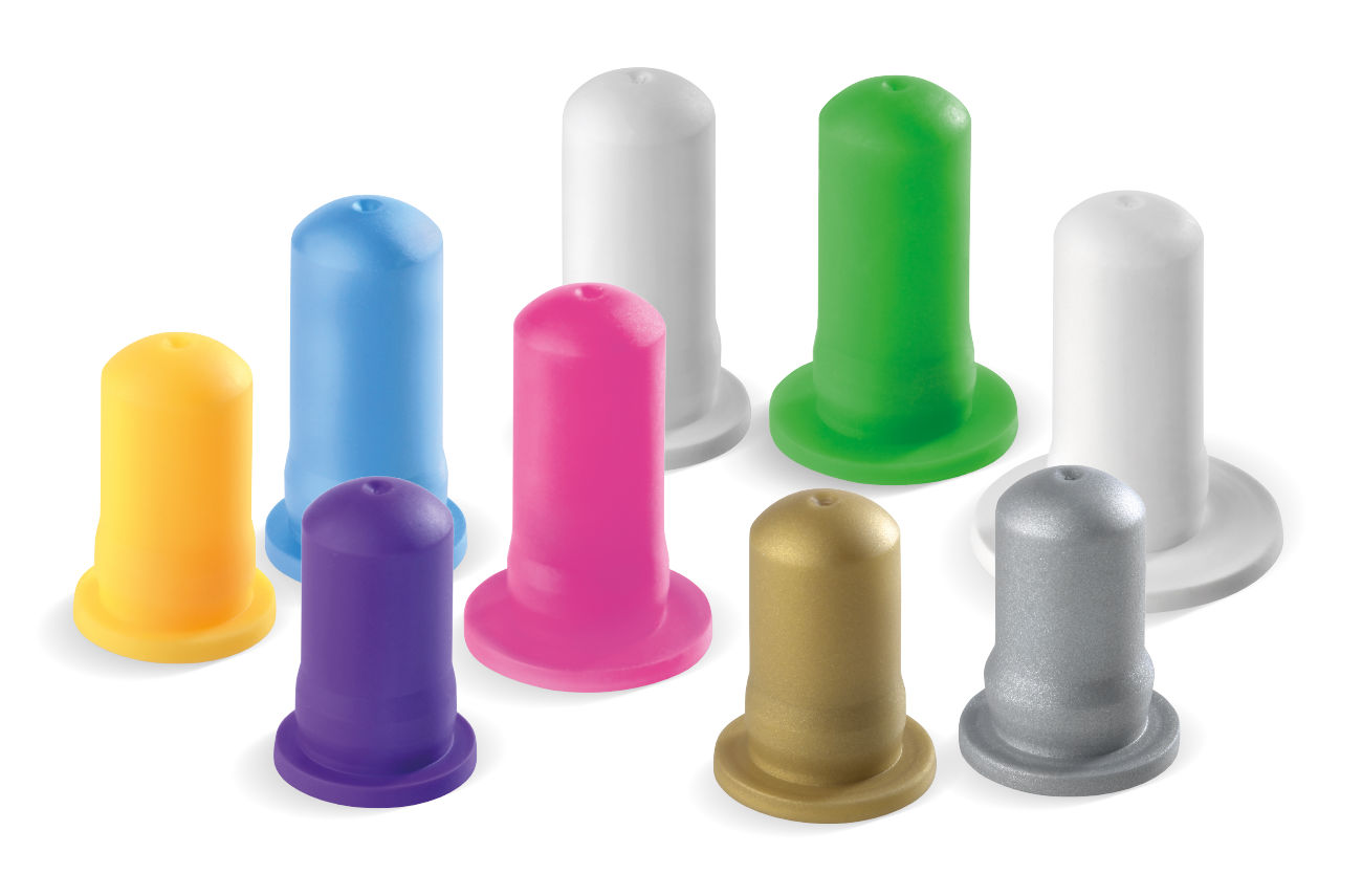 Normées selon la combinaison des éléments de montures pipettes et de bouchons. Choix de couleurs limité, selon le type de caoutchouc. Autres couleurs sur demande.